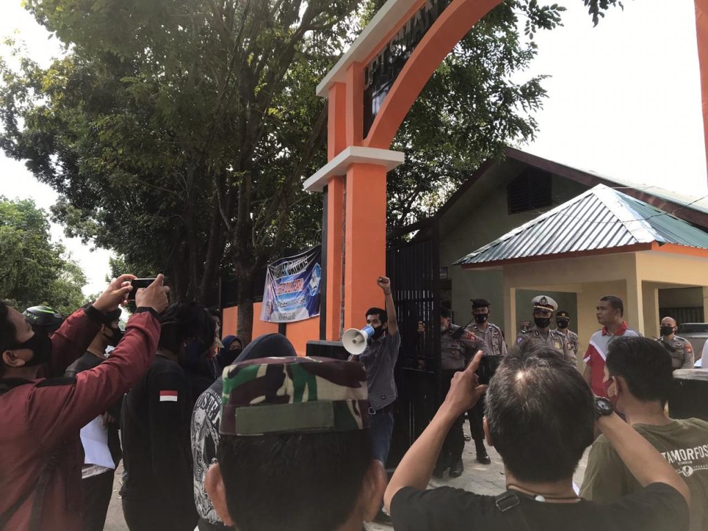 Makassar – Puluhan orangtua siswa bersama pemuda Lembaga Metamorfosis kembali melakukan aksi massa di depan SMA Negeri 07 Makassar. Aksi massa masih dalam rangka protes terhadap hasil Penerimaan Peserta Didik Baru (PPDB) Jalur Zonasi tahun 2020.