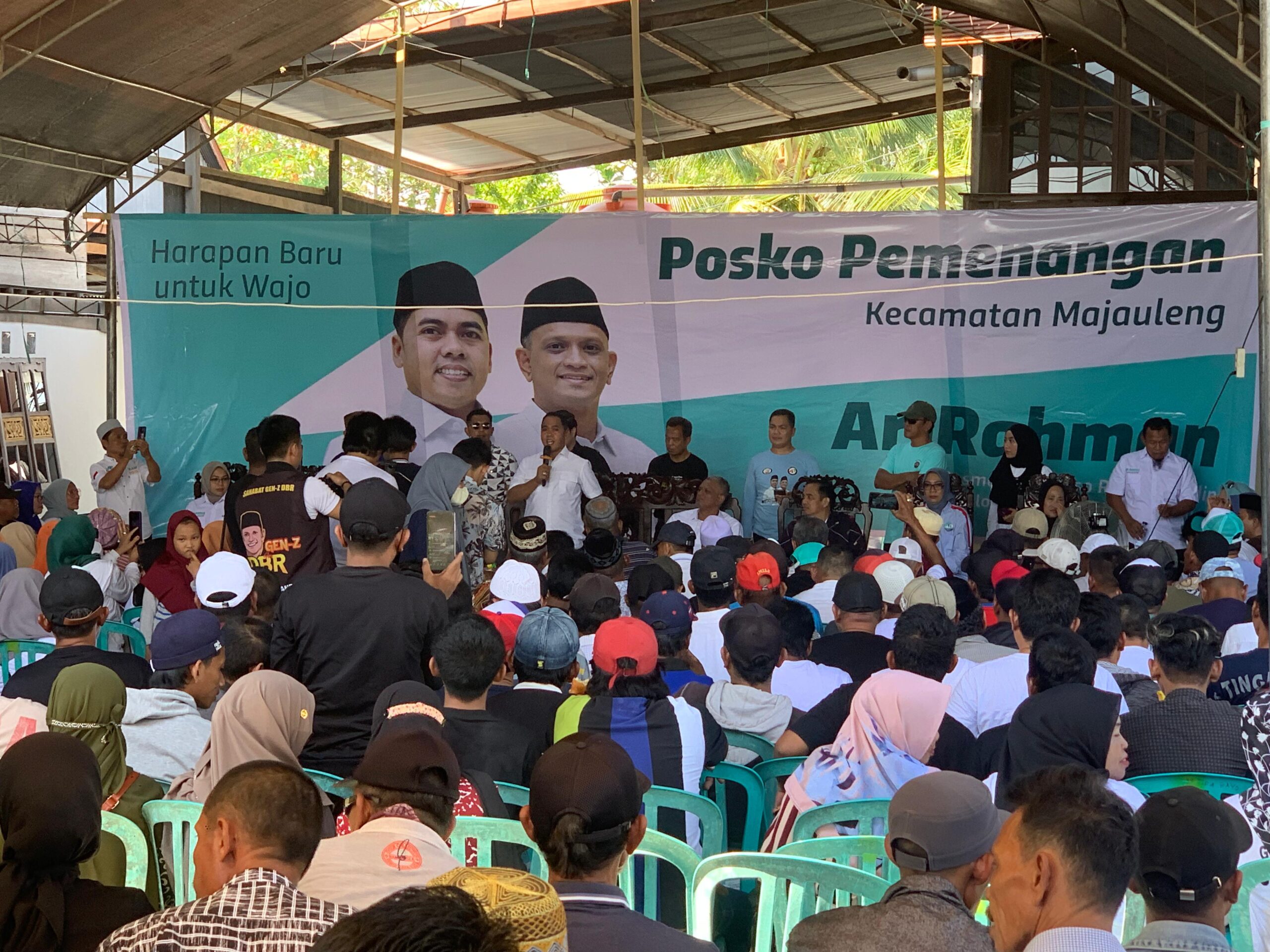 MAJAULENG – Pasangan Calon Bupati dan Wakil Bupati Wajo, Andi Rosman-dr Baso Rahmanuddin resmikan Posko Pemenangan di Desa Rumpia, Kecamatan Tanasitolo, Kabupaten Wajo, Kamis (19/9/2024).