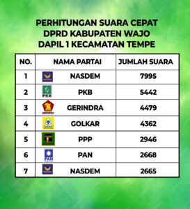SulselKita.id, Sengkang – Calon Anggota Dewan Perwakilan Rakyat Daerah (DPRD) Kabupaten Wajo untuk Daerah Pemilihan Kecamatan Tempe Kabupaten Wajo Fery Surachmat dari Partai Kebangkitan Bangsa (PKB) berhasil merebut satu kursi, Jumat (16/02/24).